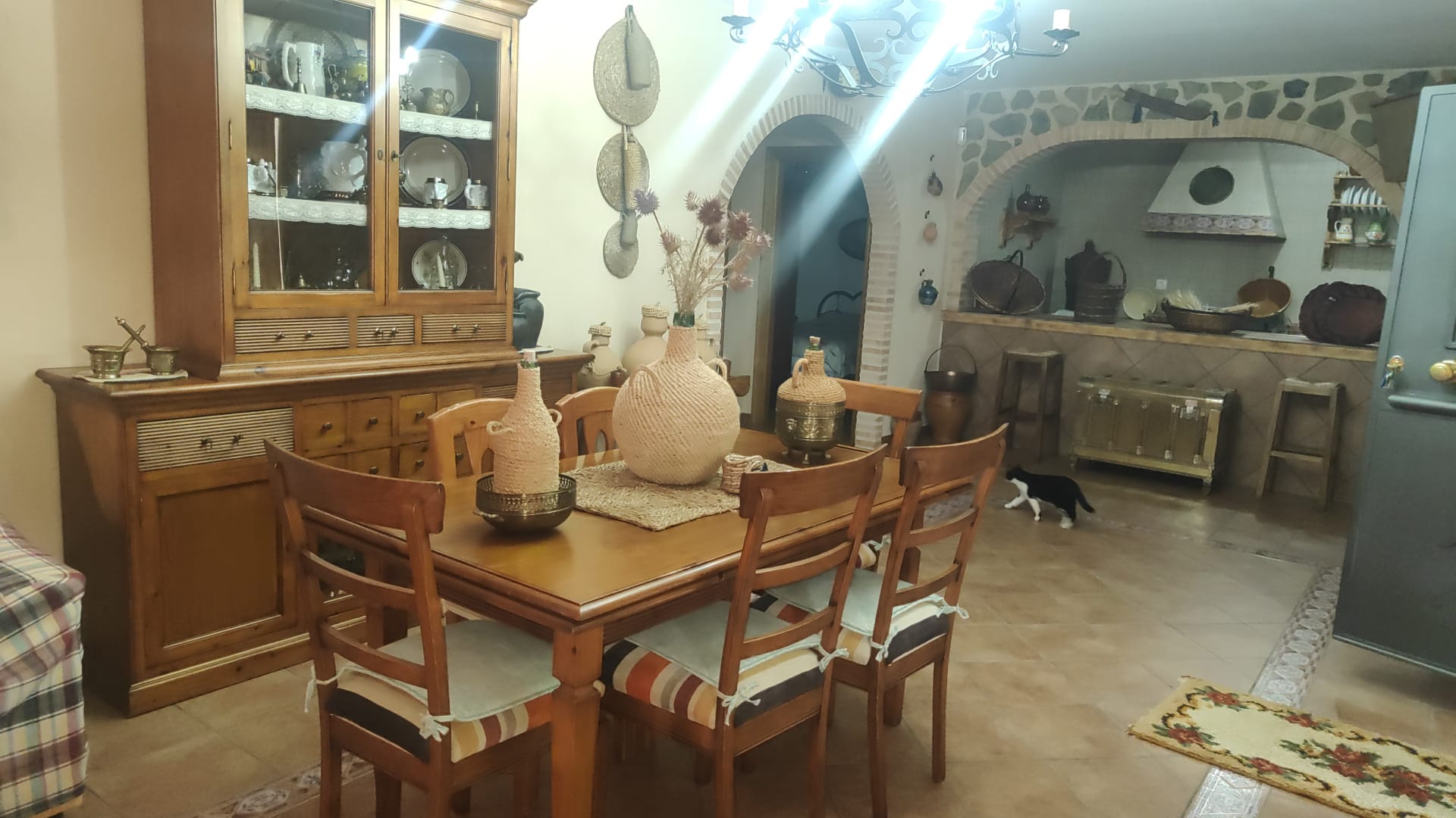 La casa conserva la esencia de lo tradicional, con muros sólidos, detalles en madera y un estilo auténtico que transmite calidez. En el interior, destaca su acogedora cocina campera, pensada para compartir buenos momentos en torno al fuego y la mesa. El patio interior invita a disfrutar del sol y las reuniones al aire libre, mientras que la terraza superior ofrece vistas abiertas al campo, convirtiéndose en un refugio de tranquilidad al final del día.
