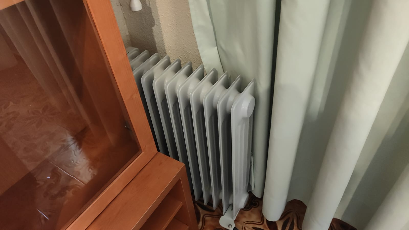 Calefacción con radiadores eléctricos. Aire acondicionado en el salón.