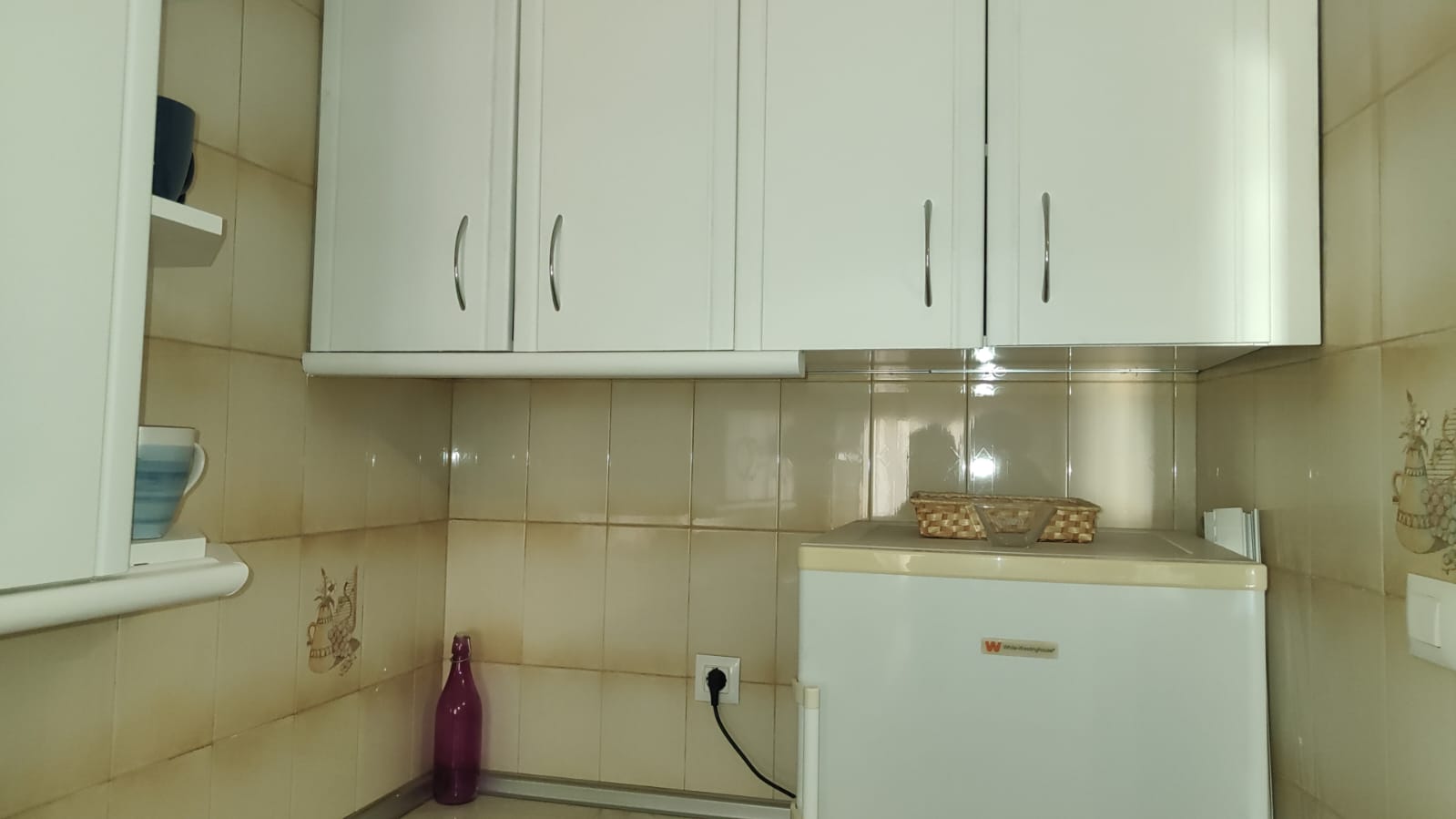 El piso esta completamente amueblado, y con todos los electrodomésticos, con lavadora, horno, frigorífico, microondas y sandwichera.