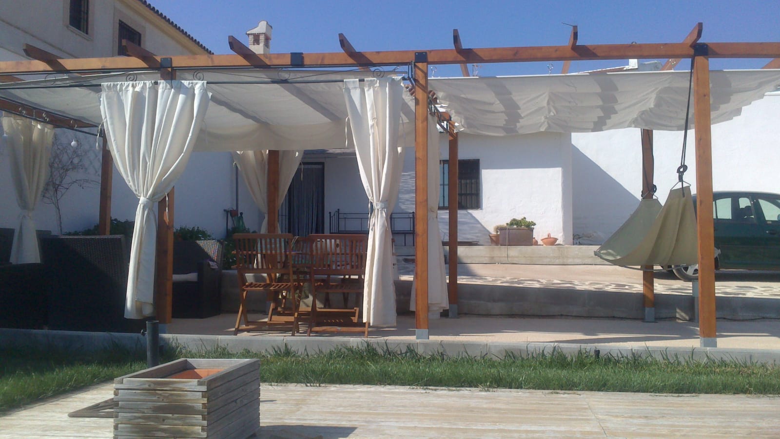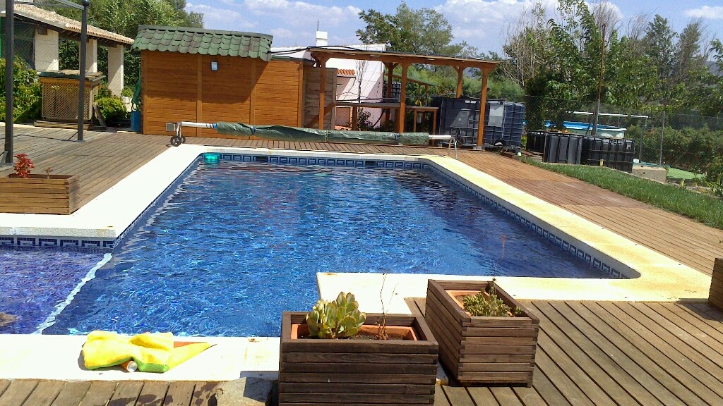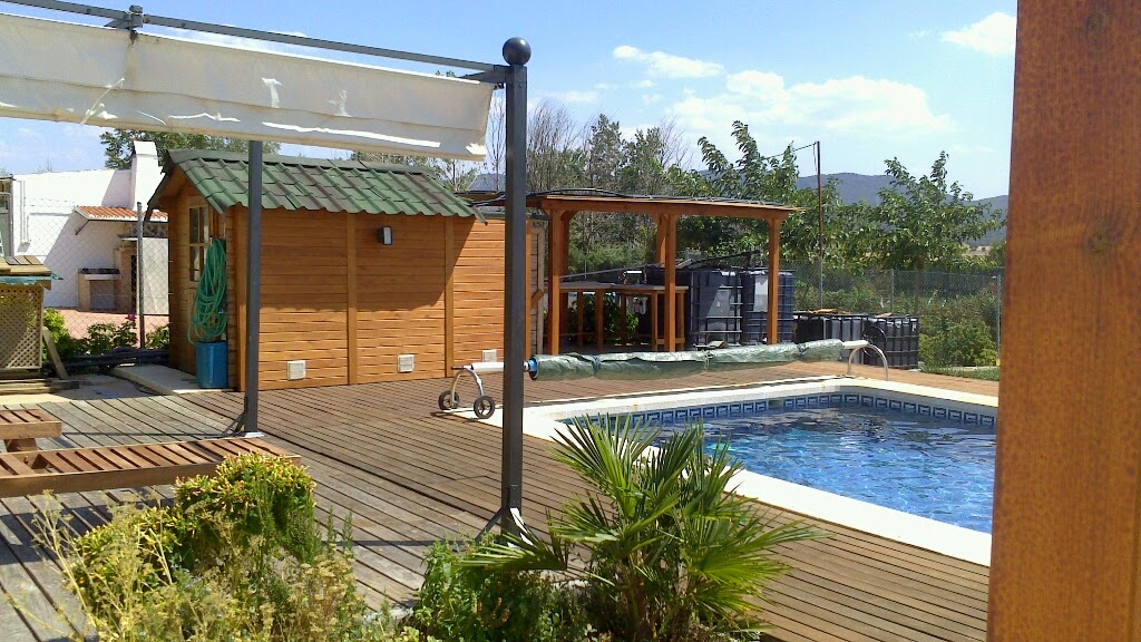Caseta de madera con depuradora, zona de almacenaje y aseo. Agua potable y electricidad urbanas ya instaladas.