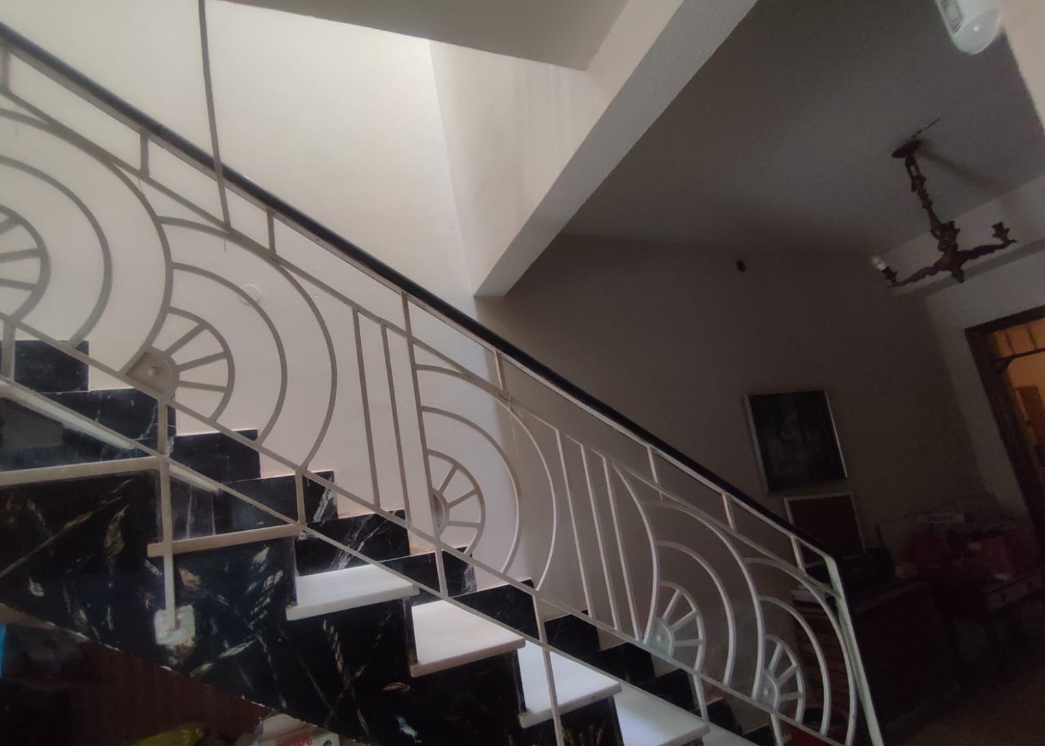 Accedemos a la planta superior a través de una espectacular escalera de mármol con barandilla de hierro forjado, que anticipa el carácter señorial de la vivienda.