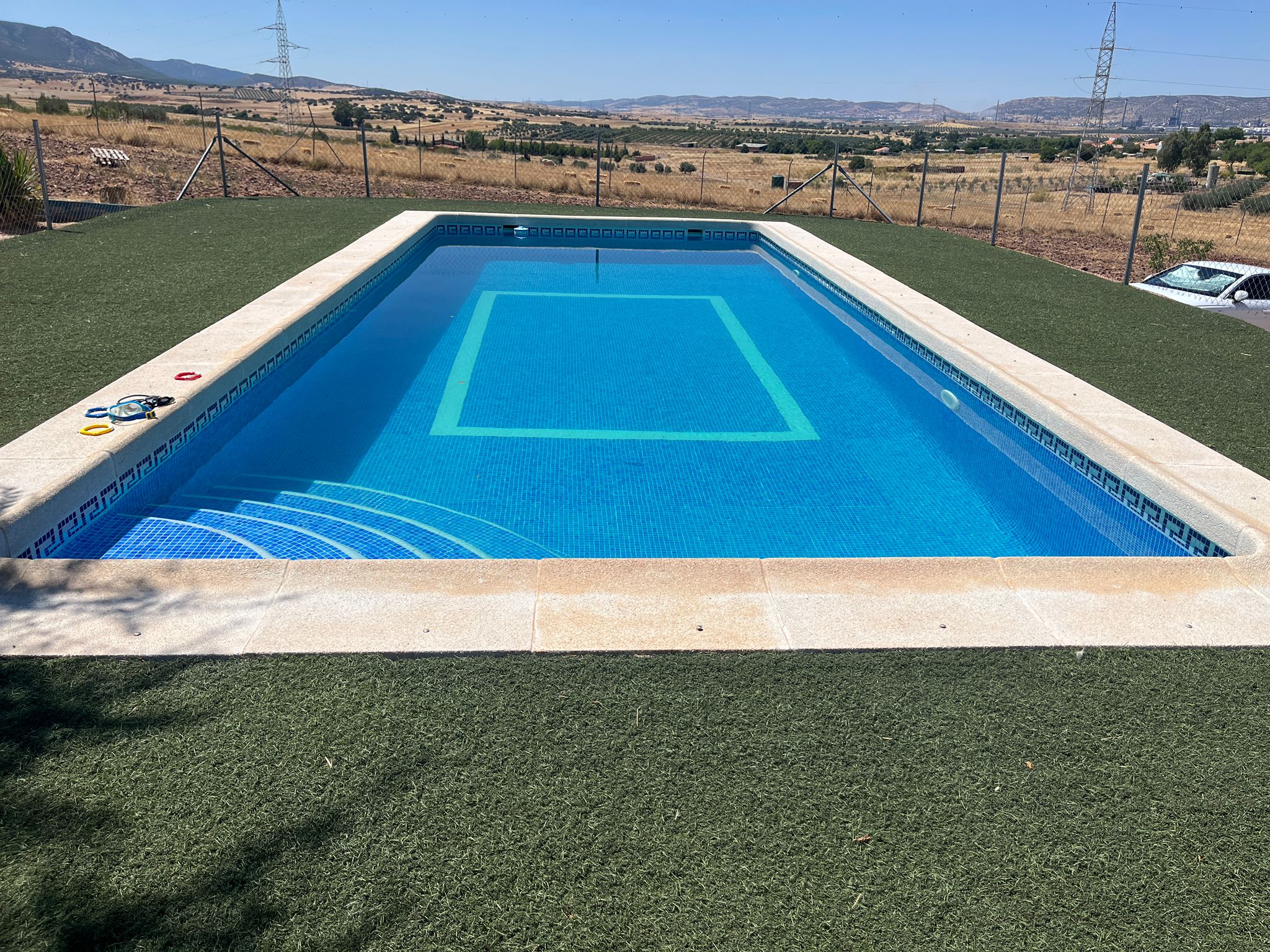 En el exterior, destaca una gran piscina de obra de 10 metros de largo por 4 de ancho, con una profundidad máxima de 2 metros y sistema de depuración, ideal para disfrutar durante los meses más calurosos. La finca dispone de suministro eléctrico y pozo de sondeo, lo que garantiza un uso cómodo y funcional durante todo el año.