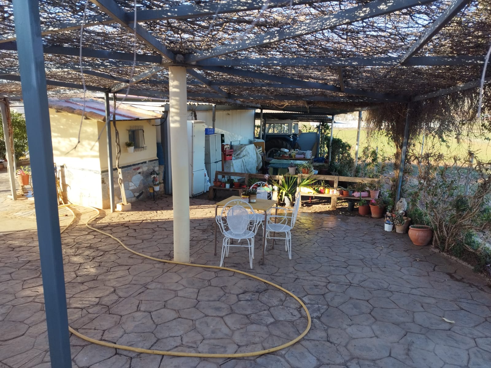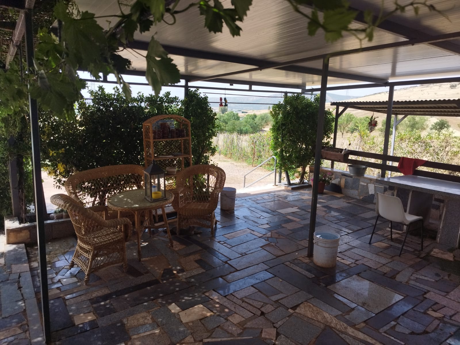 La finca cuenta con una construcción de 95 m² que incluye una amplia cocina campera perfectamente equipada, un baño, un bonito porche cubierto ideal para reuniones y una zona con barbacoa. El interior está acondicionado para poder pernoctar, lo que la convierte en una opción perfecta tanto para escapadas de fin de semana como para estancias más largas.